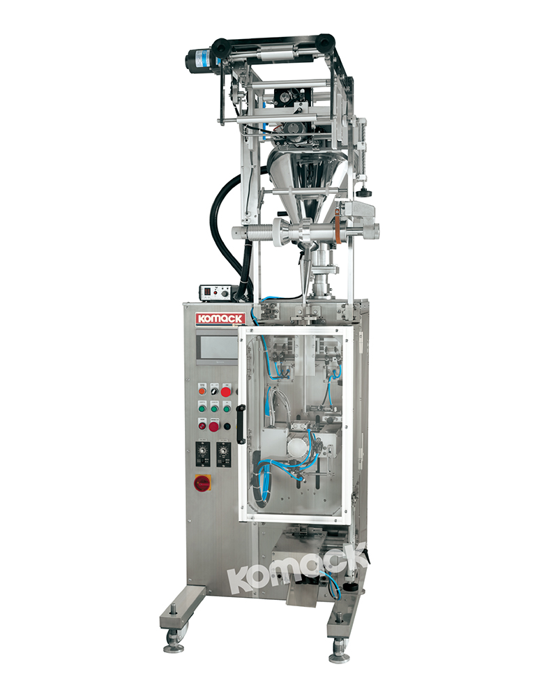 該機是重視簡易操作性的單列式條狀粉末?顆粒自動充填包裝機。本機制袋長度可變,標準配有色標光電跟蹤控制裝置。因為本機具有計量盤式的容量計量、螺桿計量、滑板計量這三種計量方法,所以可對應更多種類的充填物。本機保養簡單方便。